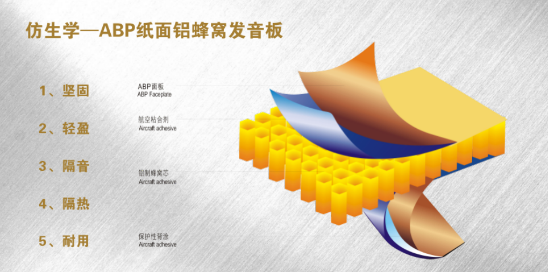 3.ABP纸面铝蜂窝发音板:蜂巢结构形成的单元室致使空气之间不产生对流从而使板块具有良好的隔热、保温、 防潮性能。英爵音响良好的防潮特性,可以安装在浴室、游泳馆、地下室等潮湿环境中。