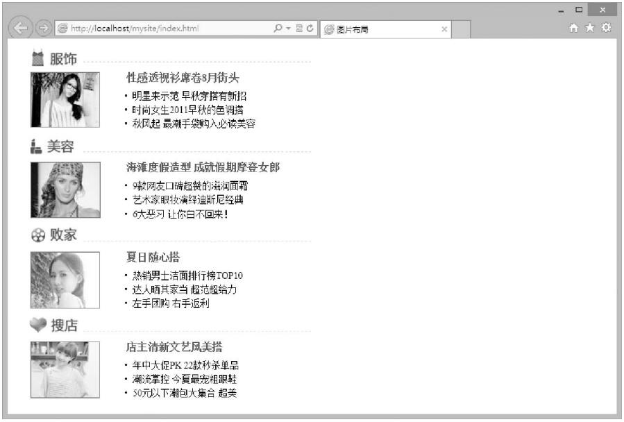 深圳网站设计公司前端工程师模仿淘宝网上的图片布局,进步展示了图片与文字之间混排和用图片布局的方法,演示效果如图5 40所示。