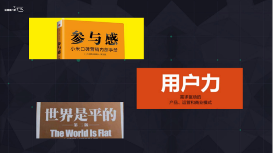 比如说这三本书的标题,《参与感》,大家知道参与这个词是很熟悉的,但是加了一个“感”字,“参与感”就有点陌生了,让人好奇。《世界是平的》,其实大家都知道世界是不平的,是个球形,这个标题也让人好奇。《用户力》也是同样的道理。这三本书都是畅销书,你们可以从他的书名里感觉出来,给你一种既熟悉又陌生的感觉。