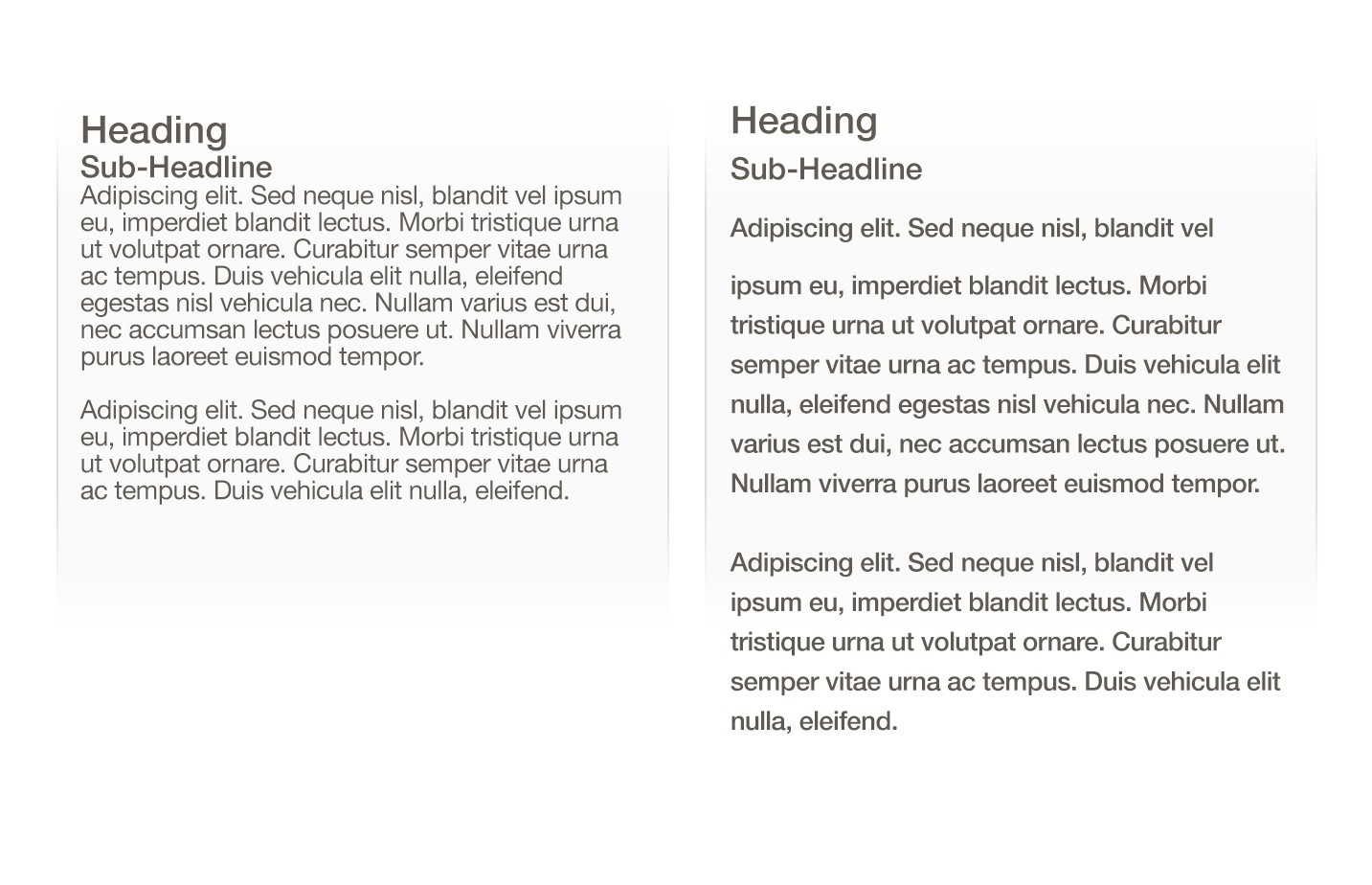 而段落之间的间距可以比行间距提高20%,留白可以为用户提供消化内容的时间。下图左:几乎重叠的文字。右:良好的间距有助于可读性。