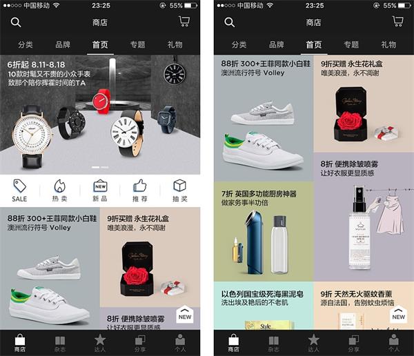 垂直电商的用户,可能购物的目的性不是很明确,一般都会以逛为主,通过逛发现自己喜欢的一些商品完成购买行为。所以首页会放置各种形式的商品推荐。推荐形式一般有: