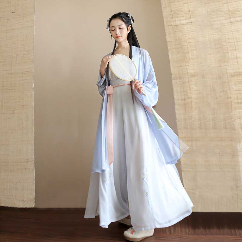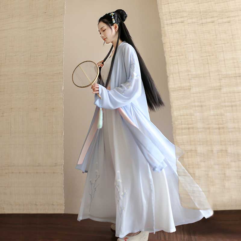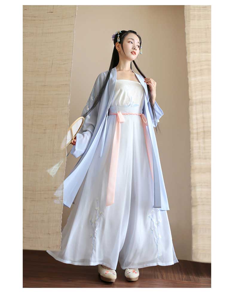 原创设计日常汉服女款绣花长褙子吊带改良宋裤春夏